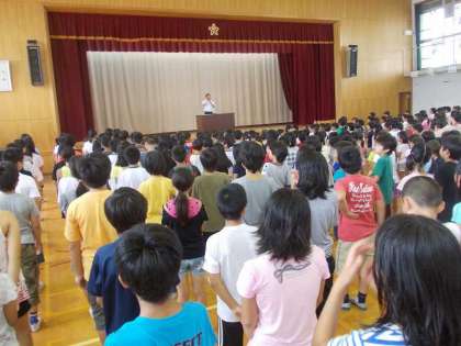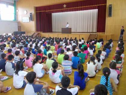 夏休みを楽しく過ごすための大切なお話を静かに聞きました。