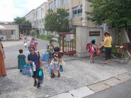 大きな荷物を持って子ども達が下校していきました。明日から夏休みです。