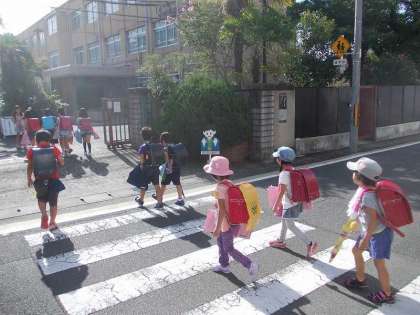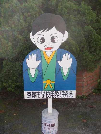 9月4日,朝は好天に恵まれました。好天の大安だからというわけではありませんが,安全看板が校門で初見守りを務めました。