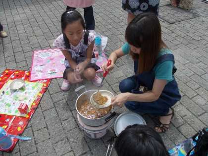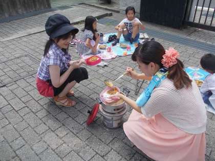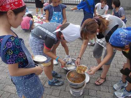 ようやくカレーが完成しました。水の量により,スープカレーのようになったグループもあったようです。