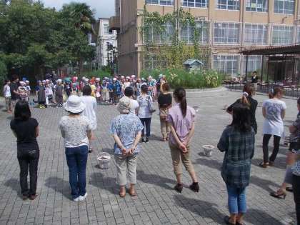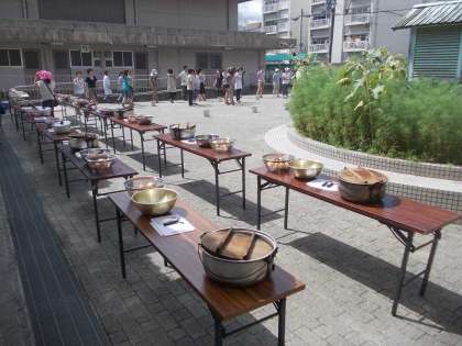 給食のご飯を利用する事や,食材の調達・保護者の方に参加していただくことから,雨でも場所を考えて決行する予定でした。この週は雨が多かったのでヤキモキしたのですが,暑いくらいの好天に恵まれました。さあ,おいしいカレーを作って食べましょう。