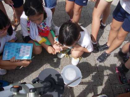 6年生の理科では,太陽黒点を,実際に天体望遠鏡を使って投影して観測しました。先月には大きな黒点があったのですが,自転により裏側に回ってしまったのか,目立つ黒点はありませんでした。