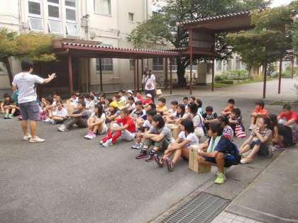 土曜日にもかかわらず,定刻前に6年生が集合してくれました。これから小小連携・小中連携の『一乗寺バザー』に出かけます。