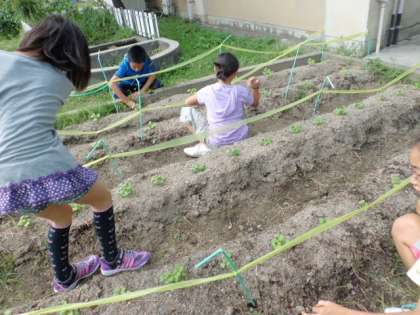 その学習で使う『聖護院大根』の種を5日に蒔き,順調に芽が出て育っています。