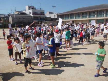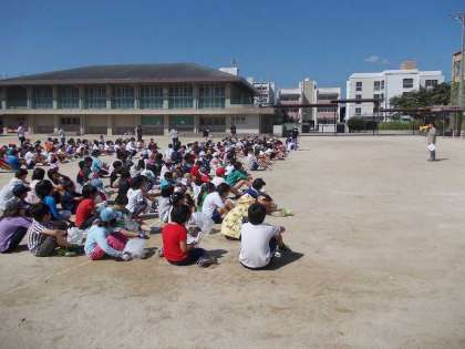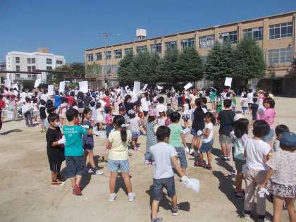 秋に運動会が行われていた頃からの伝統行事です。夏の間に育った雑草を,たてわりグループで協力してやっつけました。10時から10時半までの30分間で,本当にきれいになりました。児童の皆さんありがとうございました。6年生のリーダーの皆さん,ご苦労様でした。