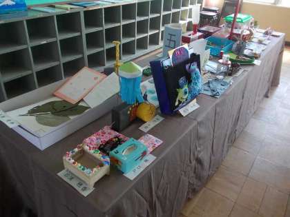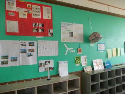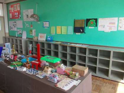 南校舎3階児童会室で展示している5年生の作品です。ぜひ見に来てください。