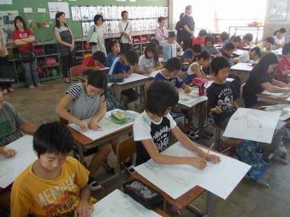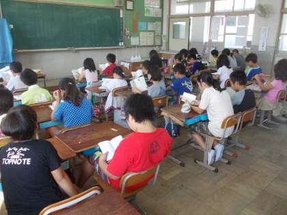 5年ろ組は,朝学習での朝読書,図工,社会の授業の様子の写真を掲載します。