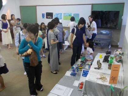 1年生・2年生・3年生・4年生の児童の作品を多目的室に集めて展示していました。