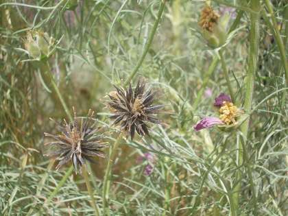 池の横のコスモスは満開を過ぎ,タネができ始めました。タネとりもしますが,そのまま土に落としておくと,来春のよい時期に芽を出して育ってくれます。このコスモスも春にタネまきをしたのではなく,秋にタネを落としておいたものです。