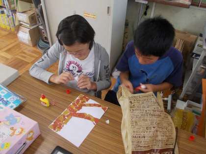 図書委員会は毎日昼休みに貸出・返却のために仕事をしてくれています。この日は読み聞かせを横目で聞きながら,秋の図書室の飾り付けを作っていました。暑い日が続いていますが,気がつけば10月ですね。