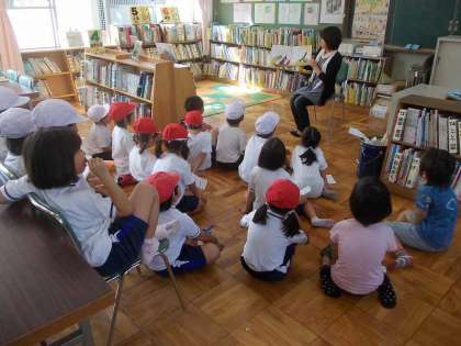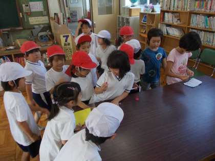 1年生の子ども達がお客さんの中心ですが,2年生の子ども達も聞きに来てくれています。