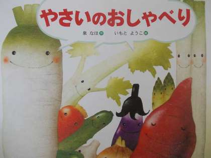 『野菜のおしゃべり』という本を読んでいただきました。今日のお話は,冷蔵庫の中で出番を待つ野菜達がおしゃべりをするというお話でした。いろいろな野菜がいろいろなお話をしました。皆さんも好き嫌いを言わないで,どんな野菜でも食べてください。