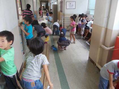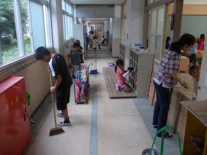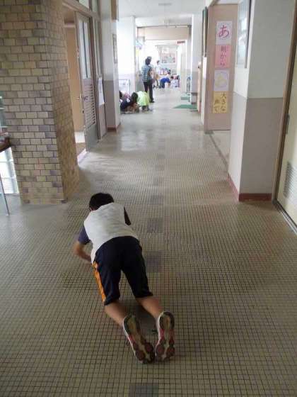 後期から新2足制を始めます。前期最終日の10月11日の5校時に,全校で大掃除をしました。特に廊下を念入りに掃いて,その後雑巾がけをしてピカピカにしてくれました。