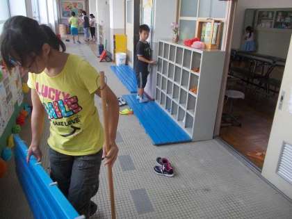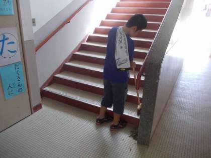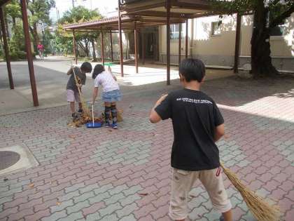 後期から新2足制を始めます。前期最終日の10月11日の5校時に,全校で大掃除をしました。特に廊下を念入りに掃いて,その後雑巾がけをしてピカピカにしてくれました。