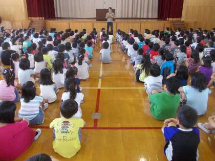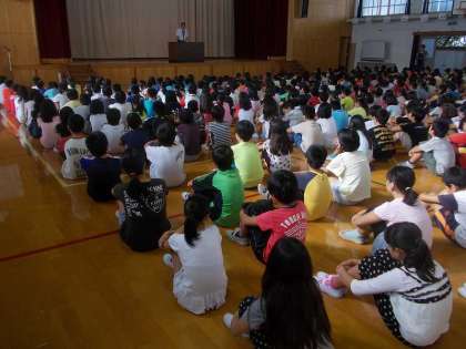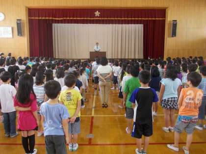 前期終業式のお話を静かに集中して聞きました。通知票を受け取って「できたこと・できなかったこと」「がんばったこと・がんばりきれなかったこと」の反省をして後期の目標をおうちで話し合ってください。