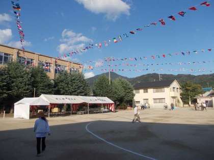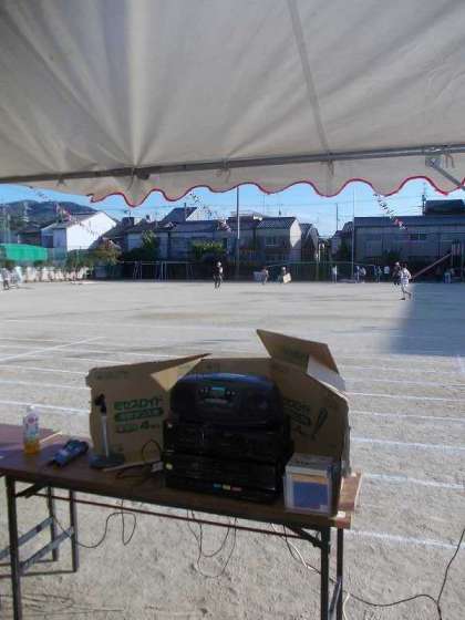 役員の方々が休日を返上して前日準備をされていました。万国旗,テント,放送設備,各種準備物,ライン…毎年の光景ながら地域の底力を感じました。