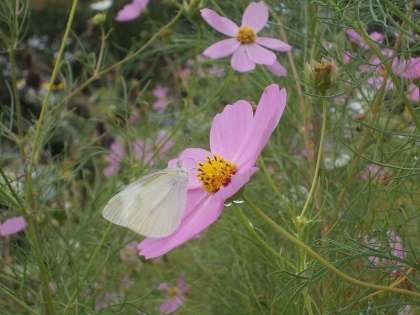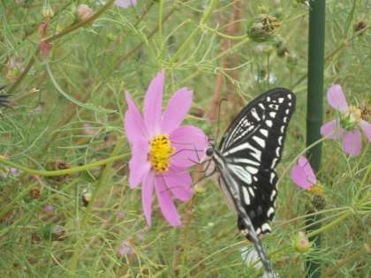 ロータリーの花壇のコスモスが終わりを迎えそうです。静かに花を見ていると,貴重な花を求めて昆虫がたくさん寄ってきていることに気がつきました。タネを取るために,花の盛りが過ぎてもしばらくコスモスをそのままにしておき,委員会の活動日に園芸委員会の児童と一緒に片付ける予定です。