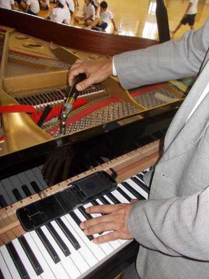 本校では定期的に音楽室と体育館のピアノの調律をお願いしています。今回は,みんなの音楽会・学習発表会に合わせた調律です。
