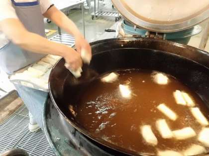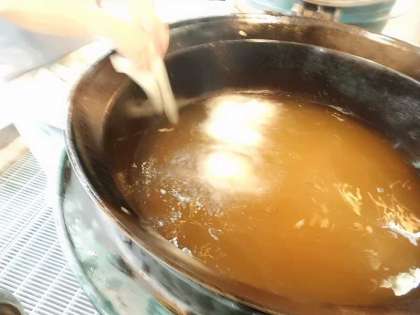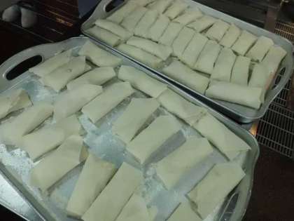 大きな鍋にたっぷりの油が用意され,手際よく春巻を揚げていきます。温度管理に気をつけて,パンクしないように,内部までしっかり火が通るように,おいしい色合いに揚がるように細心の注意が払われています。
