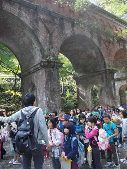 南禅寺へ抜ける道に水路閣があります。疏水の水を運ぶための工夫に驚いていました。