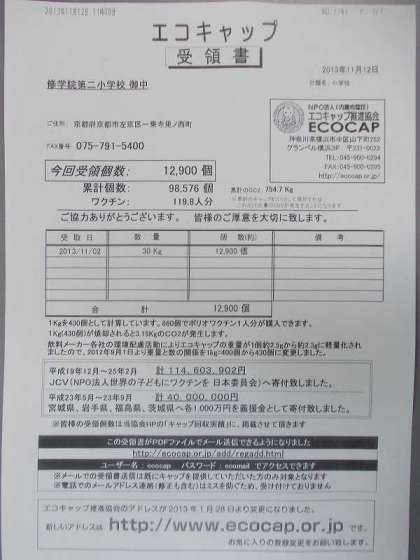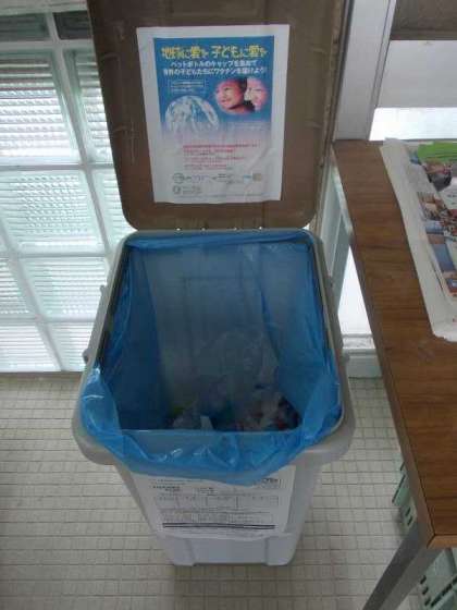 玄関でエコキャップを回収しています。今回持ち込んだ量は何と30Kg。児童のみなさんの体重よりも重い人もたくさんいるでしょうね。善意を届けています。