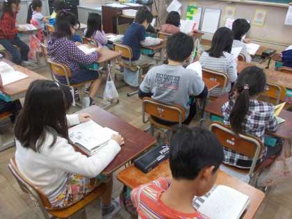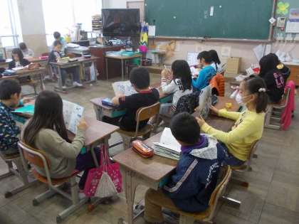 月曜日の朝学習は全校朝読書です。3年生は先生が教室に上がって来る前から読書をしていました。