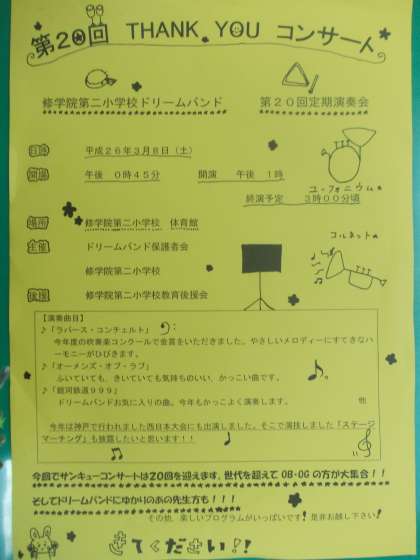 寒い日になりそうですが,修二校の体育館にお越しください。午後3時終演予定です。