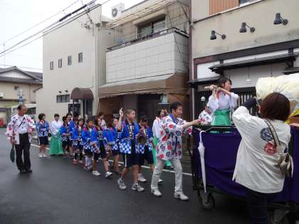 あいにくの雨となってしまいましたが,子どもたちもしっかりと校区を練り歩きました。