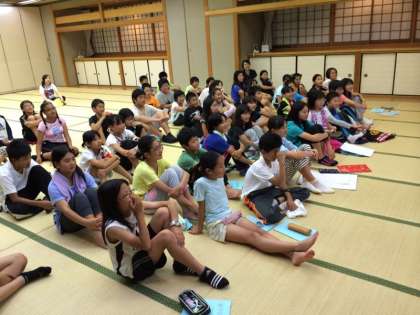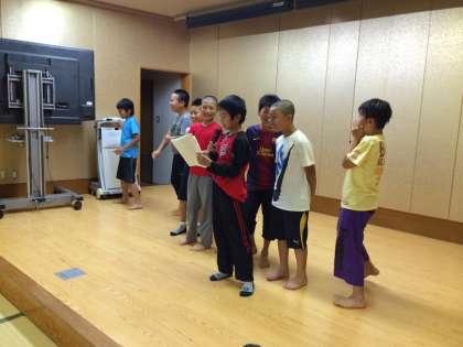 夕食の後は、お楽しみ会。この時のために短い時間で練習や準備を進めてきました。どのグループも上手に出し物をし、みんなを盛り上げてくれました。