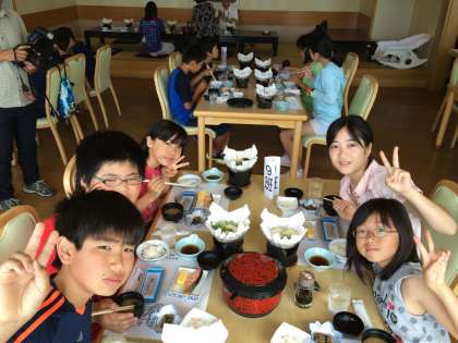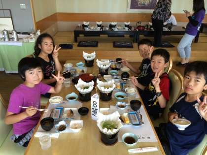 朝食です。朝からおかわりをする子どももたくさんおり、いいスタートです。一日元気で過ごせるように、しっかり食べましょう。