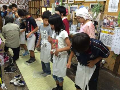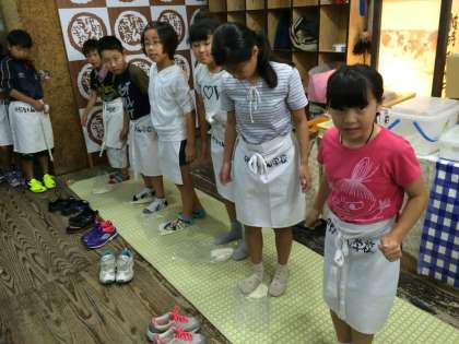 最後はこねた生地をみんなで踏みました。踏めば踏むほどフワフワのうどんになるようです。