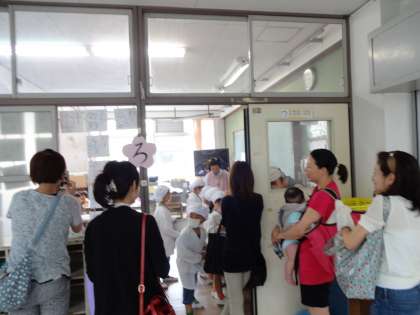ふれあいサロンでは、給食試食会に参加されている方々の給食の配膳を、PTA保健安全委員会のみなさんがお手伝いして下さっていました。