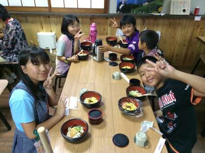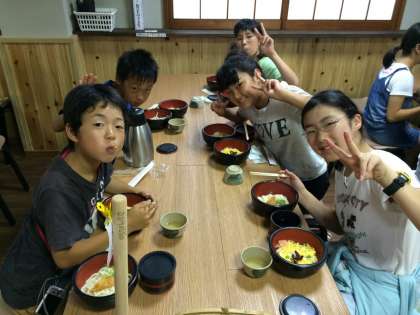 うどん学校で昼食をいただきました。香川県本場のうどんの味は格別だったようです。こんぴらさんの疲れも癒えました。