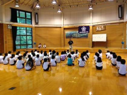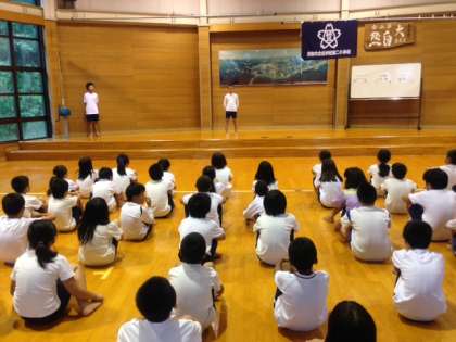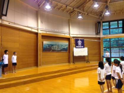 修学院第二小学校だけの朝の集いになってしまいましたが,しっかり5分前行動で集合し,話を聞く姿勢もとてもよかったです。