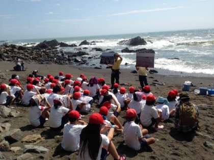 波が高いので,海に入ることは出来ませんでしたが,興味深いお話を聞かせていただきました。
