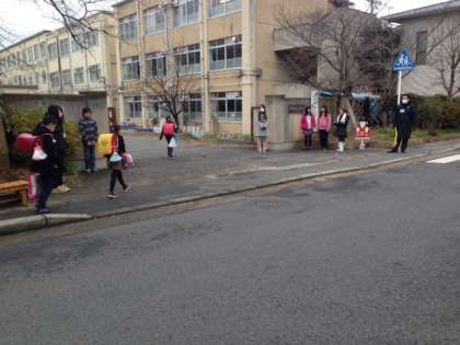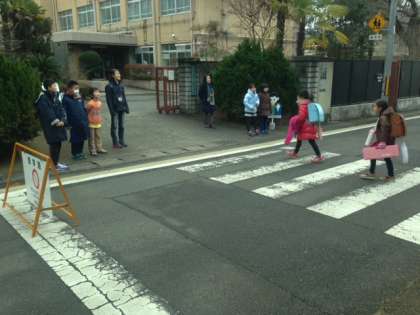 児童会計画委員や、各学級の代表委員の児童が朝に門に立ち、あいさつ運動を行っています。