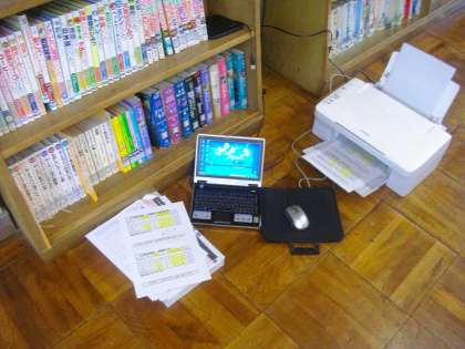 放課後まなび教室も,早い下校時刻に合わせて,早くから準備して子ども達を受入れてくださっています。コンピュータで,来月の予定表の印刷も行われていました。
