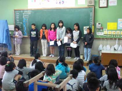 学活の時間に学年集会を開きました。集会では、校外学習の委員さんから「比叡山登山」についての説明がありました。