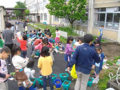 2年生はミニトマトを植えました。生育を楽しみに観察していきます。