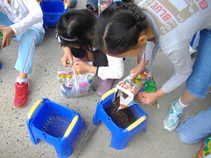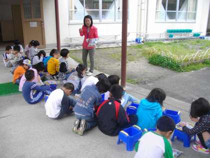 3年生はオクラを植えました。生育を楽しみに観察していきます。