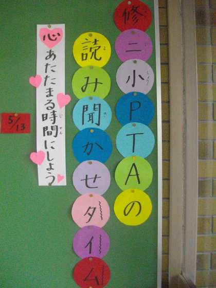5月13日から,PTA読み聞かせが始まります。毎週木曜日の中間休みをお楽しみに。