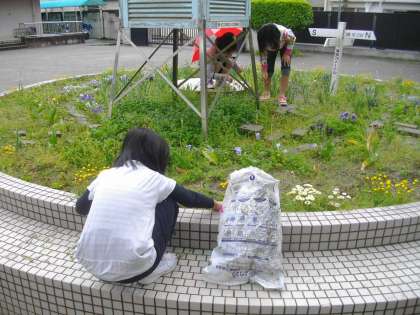この日は小雨だったので,かさをさしながら草抜きをしました。
