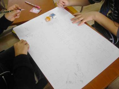図書委員会というと,図書の貸出・返却や図書の整理というイメージがありますが,自分の教室でポスターをかいて,図書室に来てもらえるように呼び掛けることも仕事です。