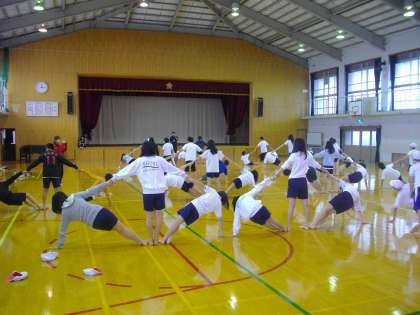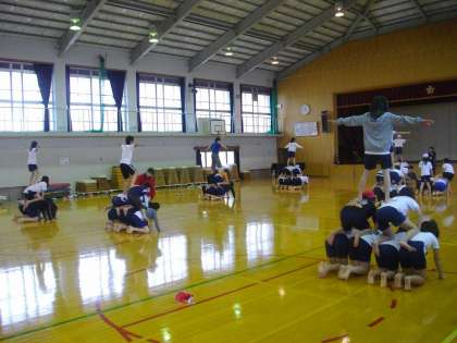 修学旅行を前にして,組体操の練習を始めました。まずは基本的な技を,場所移動と共にマスターしていきます。