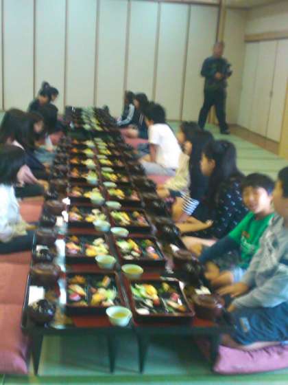 気持ちのよい清々しい朝を迎えています。朝ごはんの様子です。昨日は夜ふかしをした子どももいたようですが全員元気で朝ごはんをいただきました。これから出発です。