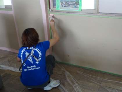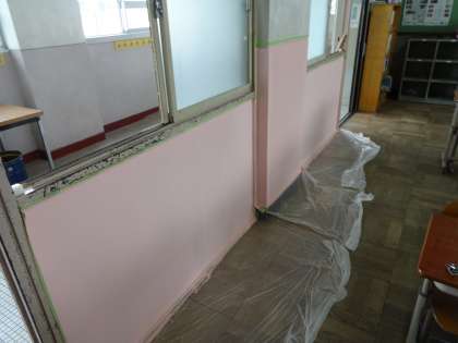 24日に、職員作業で教室の壁をきれいにペンキで塗りました。