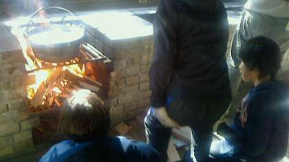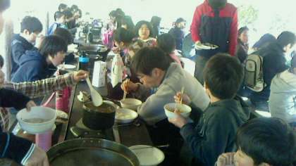 山の家に来て2回目の野外炊事を行いました。豚汁とご飯です。それと焼き魚で昼食をとりました。大変おいしくいただきました。