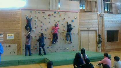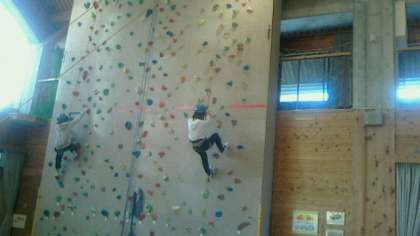 クライミングに挑戦しました。2つのコースを選択してチャレンジしました。