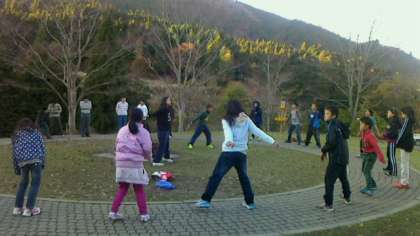 クライミングはクラスごとでのチャレンジだったので,クライミングチャレンジとキャンプファイヤー練習を各クラス交互に行いました。