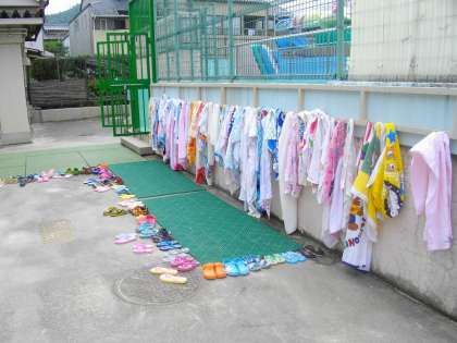 いよいよプール開きです。1年生にとっては初めての経験です。更衣の方法やシャワーの浴び方,まず教室で覚えてやっとプールへ。水慣れ指導期間は低水位なので,おぼれる心配はありません。ちょっぴり肌寒い風が大敵でした。